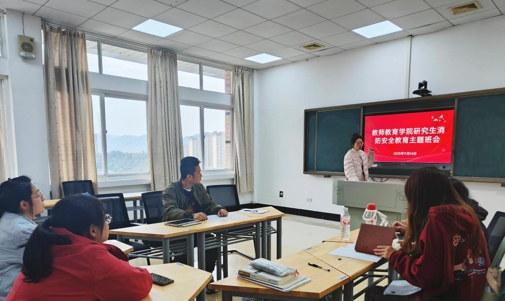 11月14日上午,我院2025级教育管理研究生召开研究生消防安全教育主题班会。本次班会旨在深入学习贯彻习近平总书记关于安全生产和消防工作的重要论述,压实研究生消防安全责任,守护校园平安。班会由程瑶池主持,学院黄力副院长、学科办李梦琪主任及全体研究生参与了本次活动。
