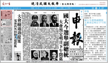 爱如生申报数据库是全文检索版大型近代文献数据库,由刘俊文总纂,北京爱如生数字化技术研究中心研制。