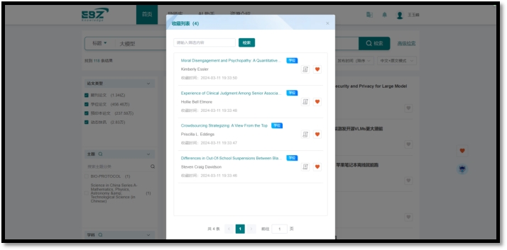 u 点击收藏列表图标,弹框展示收藏的文献。详情如下: