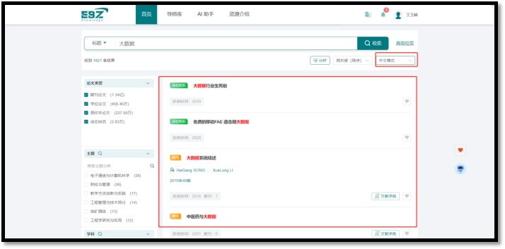 文献展示方式总共有三种,分别是中文模式原文模式中文+原文模式