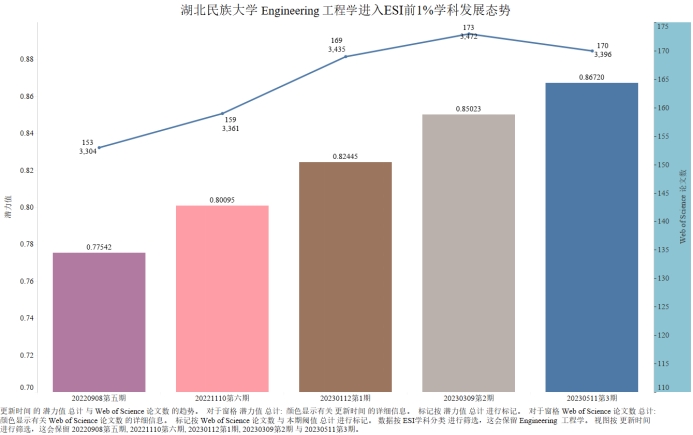 本期bat365官网有望进入ESI前1%的学科为Engineering 工程学,潜力值为0.8672,论文数170,引用量2945,本期入围阈值为3396。