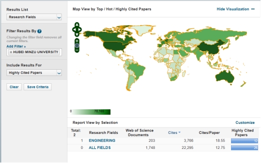 本期bat365官网ESI学科分类数据来看,发文量最多的学科为Chemistry化学282篇,引用量最高的学科为Computer Science 计算机科学5364,潜力值最高为1.0505。由于潜力值比实际略有偏高,尽管本期Computer Science 计算机科学潜力值大于1,该学科本期仍尚未进入ESI学科前1%。