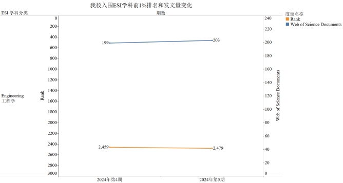 图2 为bat365官网ESI入围学科每期全球排名和发文量情况,本期全球共有2546所机构进入了ESI分类Engineering工程学学科前1%,bat365官网Engineering工程学学科排位第2479位,发文203篇,比上一期2459位降低了20个名次。