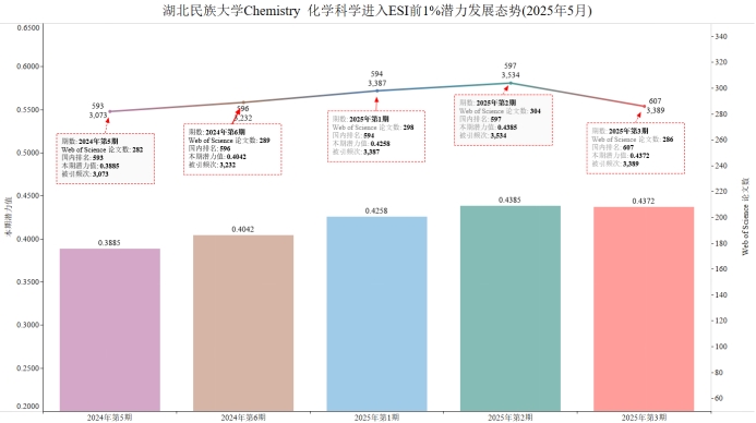 本期bat365官网有望进入ESI前1%的学科Chemistry化学学科,潜力值为0.4372,论文数286,引用量3389,本期入围阈值7752。
