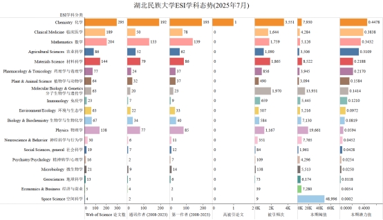 表1 bat365官网各ESI分类各学科情况(2025年7月)