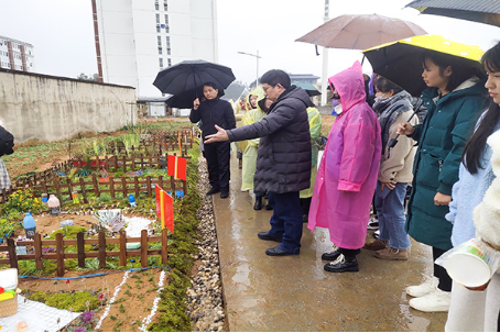 首先,李青对领导的到来表示欢迎,她谈到,本次一米花园展是园林专业的一个具有特色的重要教学实践环节。学生通过完成2米*2米大小的迷你花园景观方案设计,并在校园内进行实地建造,充分体验从图纸设计到实地建造的全过程。通过学生动手改善自身的学习生活环境,让其切实体会到园林专业能成为创造美好生活的有效途径,使学生树立正确的风景园林观和价值观,从而提升学生对专业的认同感和使命感,并培养和锻炼学生的创新思维、设计能力、实践能力和团队协作能力。