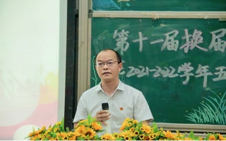 本网讯(通讯员 姚佳瑞 黄海娇 刘荣/文 关蓉/图)5月8日,我院第十一届团学换届大会暨2021–2022学年五四表彰大会在修远楼5B404教室召开,我院党总支书记邓顺松,党总支副书记赖申昊,学生科科长胡靖偲,辅导员黄晶晶,团总支书记刘蒙恩应邀出席,全体团学干部到会。