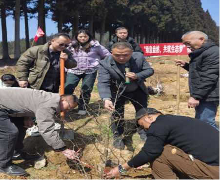 活动现场热火朝天,一株株树苗也在众人努力下,矗立在土地上,生机勃勃。