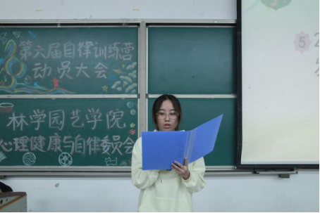 主持人袁晓宇宣读大会章程,向到会人员简要介绍心健委并播放第五届自律训练营优秀成果展示视频。心健委活动部部长张林海从活动内容、注意事项、奖惩制度等方面详细介绍了本次的“自律训练营”,帮助新生了解学院特色自律活动。
