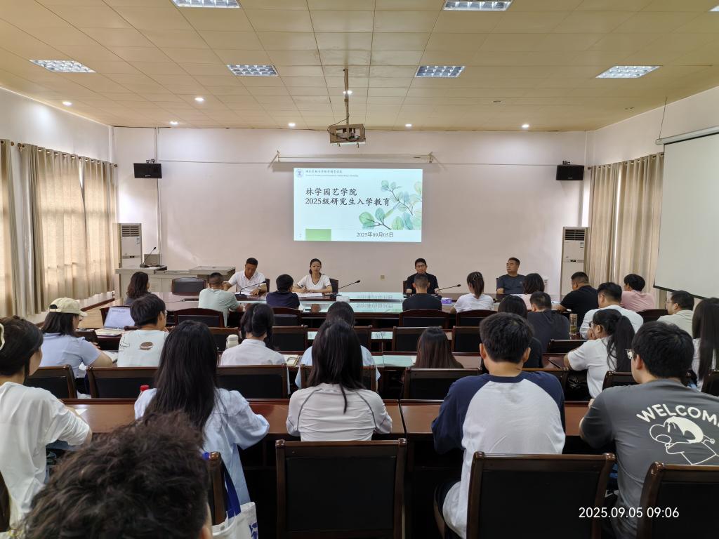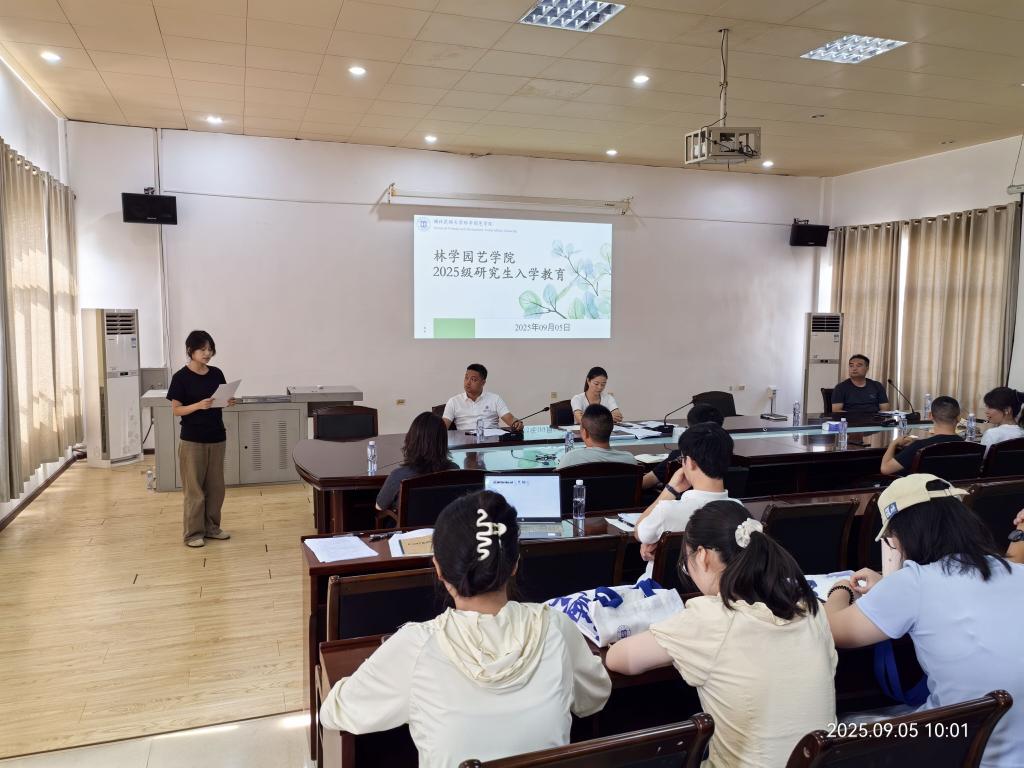 (通讯员:李柯霖)9月5日,为帮助2025级硕士研究生尽快适应新环境、明确发展方向、夯实思想政治与学术基础,我院在生物资源保护与利用湖北省重点实验室二楼会议室举行林学学科硕士研究生新生开学典礼与入学教育活动。活动通过爱国主义教育、院史院情介绍、学科方向讲解、师生交流座谈及管理规范学习等多种形式,为全方位引导新生了解研究生培养体系,完成科研启蒙,开启研究生阶段的新学习、新生活奠定基础。学院党总支书记姚兰教授、院长艾训儒教授、各二级学科负责人及导师代表出席活动,活动由学院党总支副书记胡海剑主持。