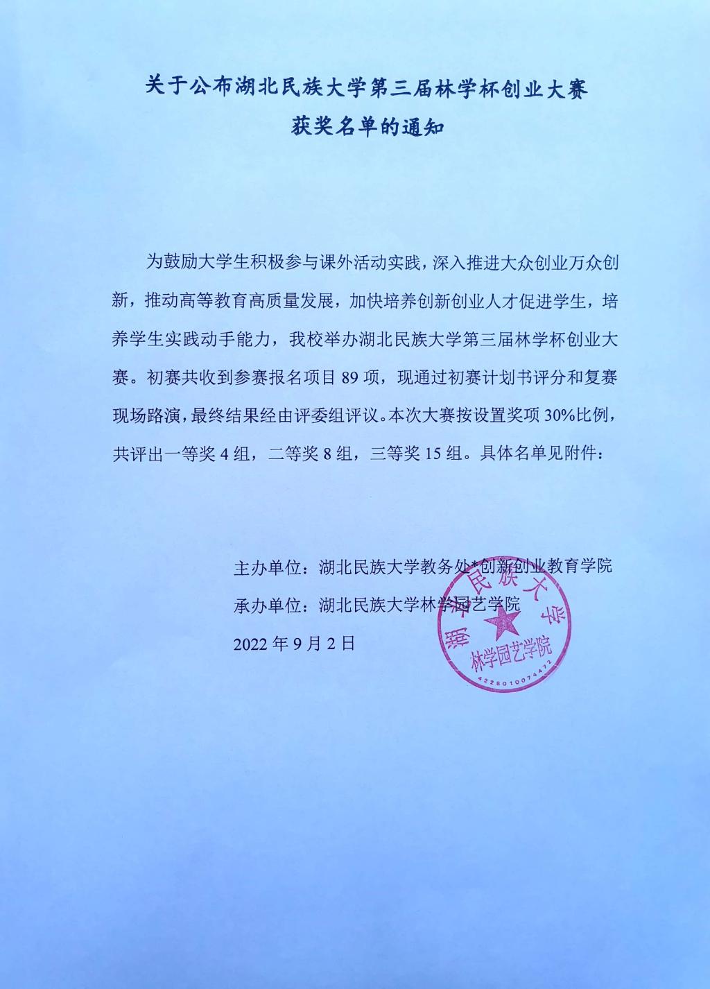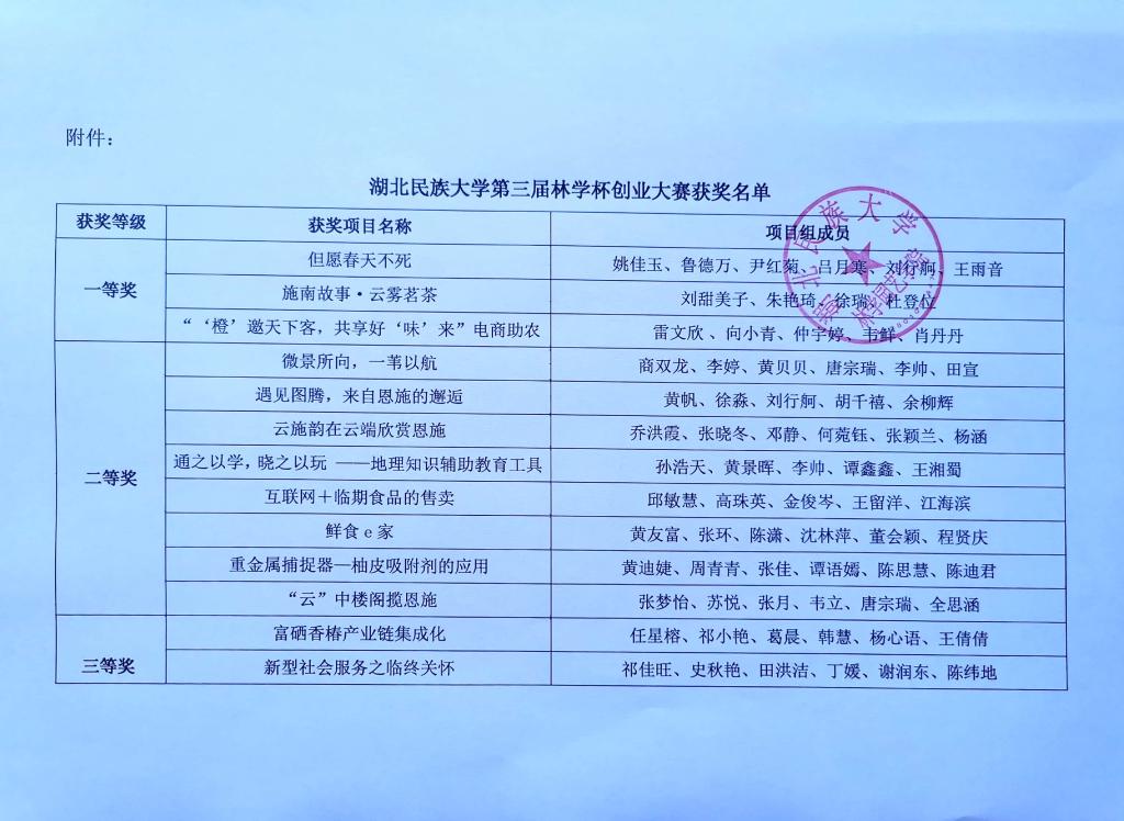 关于公布bat365在线中国登录入口第三届林学杯创业大赛获奖名单的通知