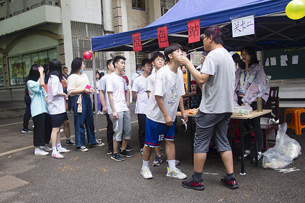 在本次活动中,我院负责“橙心如意”—橙色站,共有“你演我猜”“筷子接力”“心健小转盘”三个游戏环节。“你演我猜”环节中,参与人员两两一组,工作人员将写有提示词的便利贴贴在猜词者头上,猜词者通过表演者的表演正确猜出所给提示词。参与者们充分发挥想象力与表达力,欢声笑语不断。“筷子接力”环节中,每个参与者用嘴巴衔起一只筷子,通过筷子进行钥匙链接力,参与者们齐心协力,直到最后一个人把钥匙链放到桌子上。游戏过程中,状况百出,笑声不断。活动现场人头攒动,参与者活跃在各个活动站点中,享受着游戏与色彩带来的乐趣。