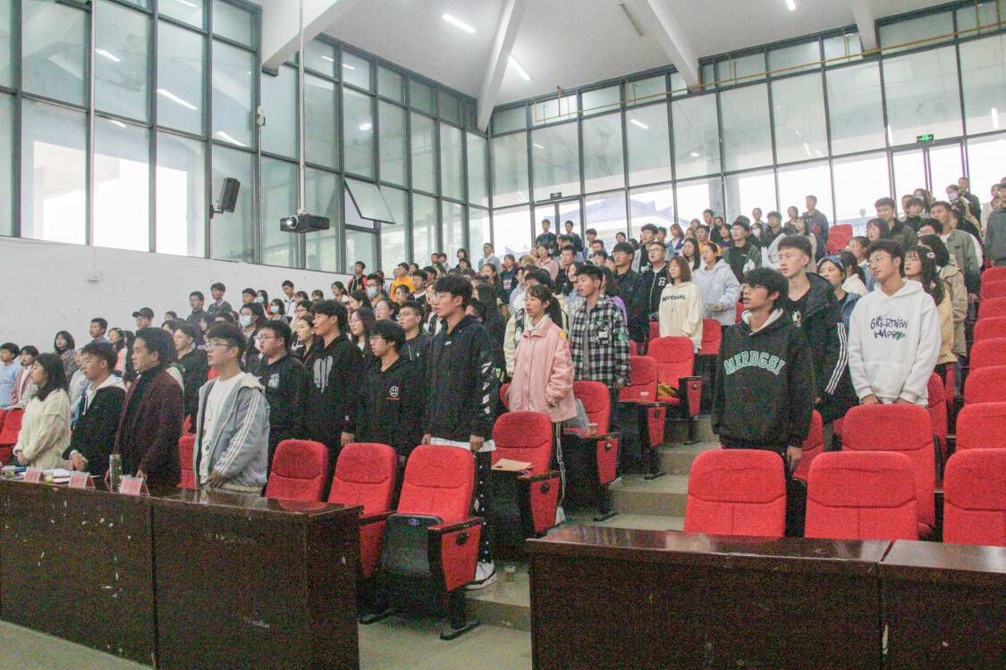 本网讯(见习通讯员 王薇 李沙沙 关蓉 刘荣/文 谭鑫鑫 何亮莉/图)11月4日,我院在修远楼5B403教室举行第十期学生干部综合素质培训暨第二次青马工程开课典礼。党总支副书记赖申昊,团总支书记刘蒙恩应邀出席,我院大一全部团学班干部参与本次典礼。