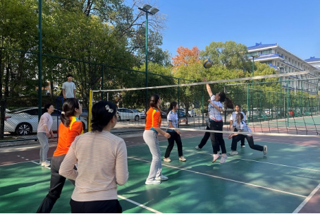 双方经过简单热身后,比赛开始。教工女队旗开得胜,赢得第一局的胜利。第二局开始,学生女队不甘示弱,队员间相互鼓励,分工明确,传球、扣球、拦网,进攻与防守配合默契,赢得第二局比赛。一旁观赛的老师和学生不时发出热烈喝彩声。在决胜局,双方队员斗志昂扬,拼尽全力,在比分上互不相让,你追我赶。最终,教工女队以2:1的比分获得胜利。