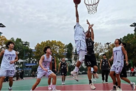 (本网讯 通讯员 叶欢 见习通讯员冯依曼/文 杨晓姮 见习通讯员钟丽燕/图 )10月27日,我院与数学与统计学院在团结广场举办篮球联赛。