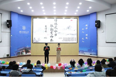 活动在充满青春活力的开场舞中拉开序幕。随后,13组选手依次登台,通过诗朗诵、舞蹈、情景剧、相声、合唱等多种形式,创新诠释古典诗词,展现中华文化的深厚底蕴。互动环节设置“表情猜诗句”“诗词错字找茬”等趣味游戏,学生们热情高涨、踊跃参与,现场欢声不断,气氛高涨。