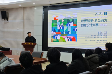 (本网讯 见习通讯员 李官敏/文 通讯员 伍玲依 刘盈/图)12月29日下午,全国第五届印迹乡村创意设计大赛湖北赛-2025“鄂更和美·乡当有为”创意设计大赛宣讲会在学校行政楼3号会议室顺利举行。本次活动由林学园艺学院承办,恩施州农业农村局章银华副局长、乡村建设促进科周行雨科长,恩施职业技术学院江向东教授、张文、王鸥等教师,以及我院相关专业师生共同参与。宣讲会由我院党总支书记姚兰主持,特邀华中科技大学建筑与城市规划学院博士生导师、湖北省乡村建设高校联盟乡村规划建设管理专委会主任王通副教授担任主讲嘉宾。