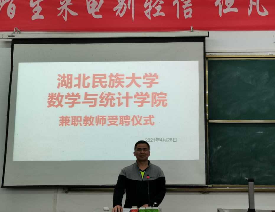 本网讯(见习记者 孙思 田宇/文 孙思 张粤/摄)4月28日晚,我院在3307教室举办屈韬兼职教师受聘仪式暨专题讲座。我院党总支书记赵魁轩,专业认证办公室主任及数学系主任向中义教授,副主任谢君辉副教授,宋昆仑老师出席本次讲座仪式。数学与应用数学专业全体在校学生参加了本次讲座仪式,我院副院长魏代俊教授主持本次讲座仪式。