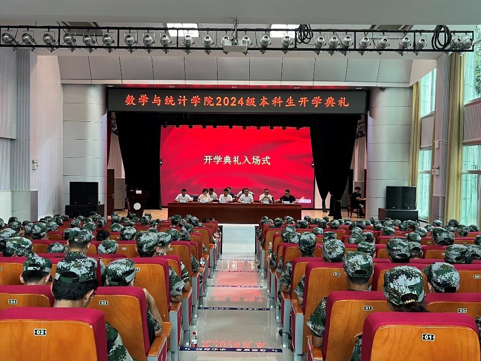 在金风送爽,月满中秋之际,9月16日下午,数学与统计学院在行政楼一楼会议室隆重举行2024级新生开学典礼。学院党总支书记魏代俊,党总支副书记、院长唐利明,党总支委员、副院长向会立、方壮,特邀优秀校友代表恩施高中吴代军老师,学院优秀教师代表陈敬珊,学生科牵头负责人廖祥宇,2024级新生班主任牟双、李子君、龚政,以及2024级全体本科生和学院学生会、团总支主要负责人出席典礼。本次典礼由学院党总支副书记郑敏主持。