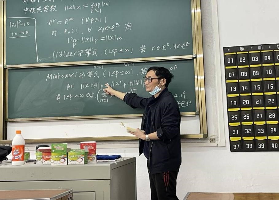 吴勇老师,曾获2006年、2007年优秀班主任荣誉称号,教学经验丰富,凭借工整美观的板书和幽默风趣的性格出圈的资深老师。吴老师从事《数学分析》课程教学多年,课堂上,学生总会被他整洁美观的板书折服。他时常向同学们分享自己的考研和教育故事,基于对于教育的热爱,对于学生的责任,让吴老师多年的从教生涯完美诠释了“教书育人”的含义。