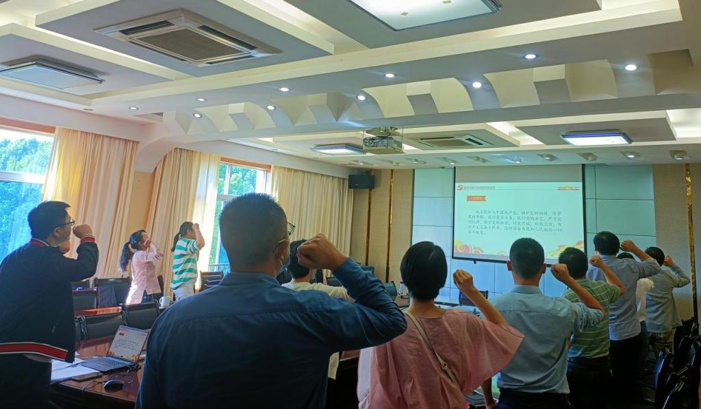 会上,照常进行党费缴纳和重温入党誓词。支部书记王清龙带领党员学习7月29日至30日中央统战工作会议精神,并选学恩施州委宣传部、组织部、州委理论信息中心印发的“支部主题党日”学习资料(第9期)有关内容:第一继续加强学习强国学习;第二积极组织党员参加“关爱妇儿·99公益日”活动。