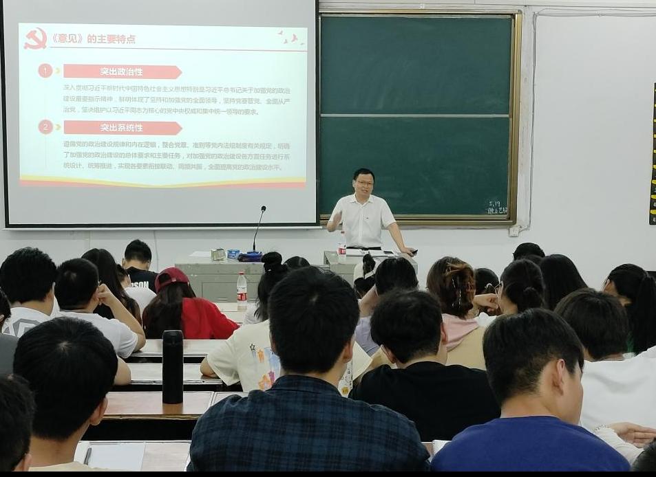 本网讯(见习记者 田学炜 汪兴鸿/文 田学炜 汪兴鸿/摄)5月21日晚,我院于3308教室开展以“党的政治建设是党的根本建设”为主题的党课培训,我院党总支书记赵魁轩主讲,全体党员、预备党员及入党积极分子参与学习。