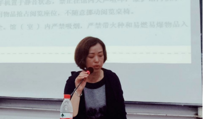 最后,向老师介绍bat365官网图书馆的基本信息,从“刷卡入馆”、“开放时间”、“入馆须知”、“借书权限”四个方面讲解了bat365官网图书馆的基本规定和如何利用图书馆。