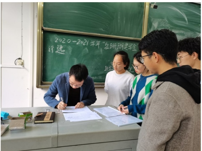 会议之前,两位同学均提前准备好相关材料及证明,确保内容的真实性。会议开始,刘聪老师针对每一项加分项目找到相应材料,根据《bat365在线中国登录入口普通本科学生奖学金评定及奖励办法》、《“红珊瑚基金”管理办法》等相关文件要求严格按照“红珊瑚奖学金”评审细则对参与评选的两位同学进行得分量化考核,按照相关规定进行统分,随后进行全院公示。