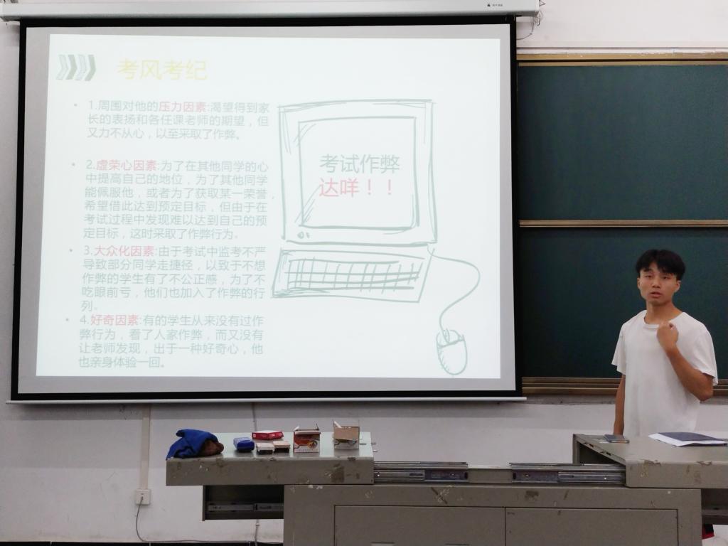 本网讯(记者 尚者 曾晓 李雨洁/文 尚者/摄)为进一步激发同学们备考积极性,树立良好考风考纪。6月19日晚,我院期末考试临近,各班级召开考风考纪主题班会。各班级积极落实学院要求,组织学生进行“塑造优良考风考纪,牢固学生诚信意识”主题学习。