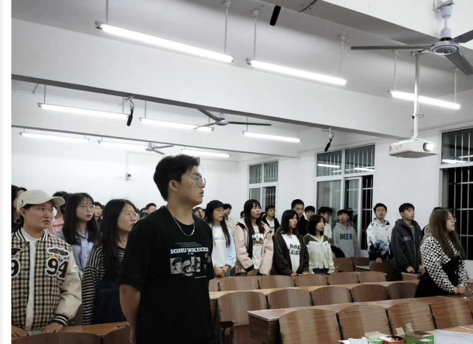 晚点名伊始,团支书带领全班同学举行团日活动,各班学生齐唱团歌并重温入团誓词。接着,班长向同学们讲述了一些有关清廉的事迹,从而向同学们弘扬这种清廉的高尚品德。最后,班长强调了校园安全方面的问题,同学们要按时回校回寝,杜绝夜不归宿等行为,为共同营造安全校园而努力。