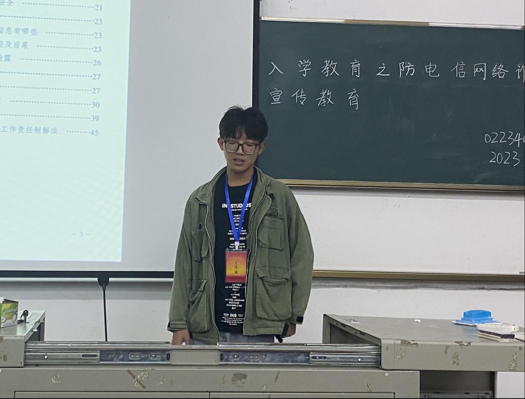 本网讯(见习记者 张婷 高小淼/文 张婷 高小淼/摄)为进一步提高同学们的安全防范意识,谨防电信网络诈骗,切实保障同学们的财产安全。10月26日晚,我院新生开展以“防范电信网络诈骗”为主题的宣传教育活动,本次活动由我院团总支负责,2023级全体新生参与。