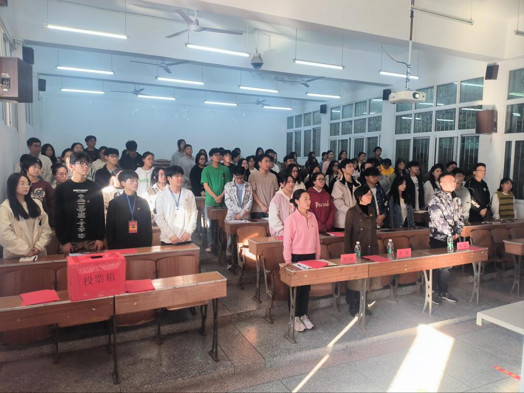 会议伊始,齐唱团歌,并由廖祥宇老师介绍代表学院参加学校团的代表大会的候选人情况。紧接着,黄丽娜老师宣读本次选举的草案。审议通过共青团bat365在线中国登录入口数学与统计学院团的代表大会草案、总监票人、监票人建议名单。