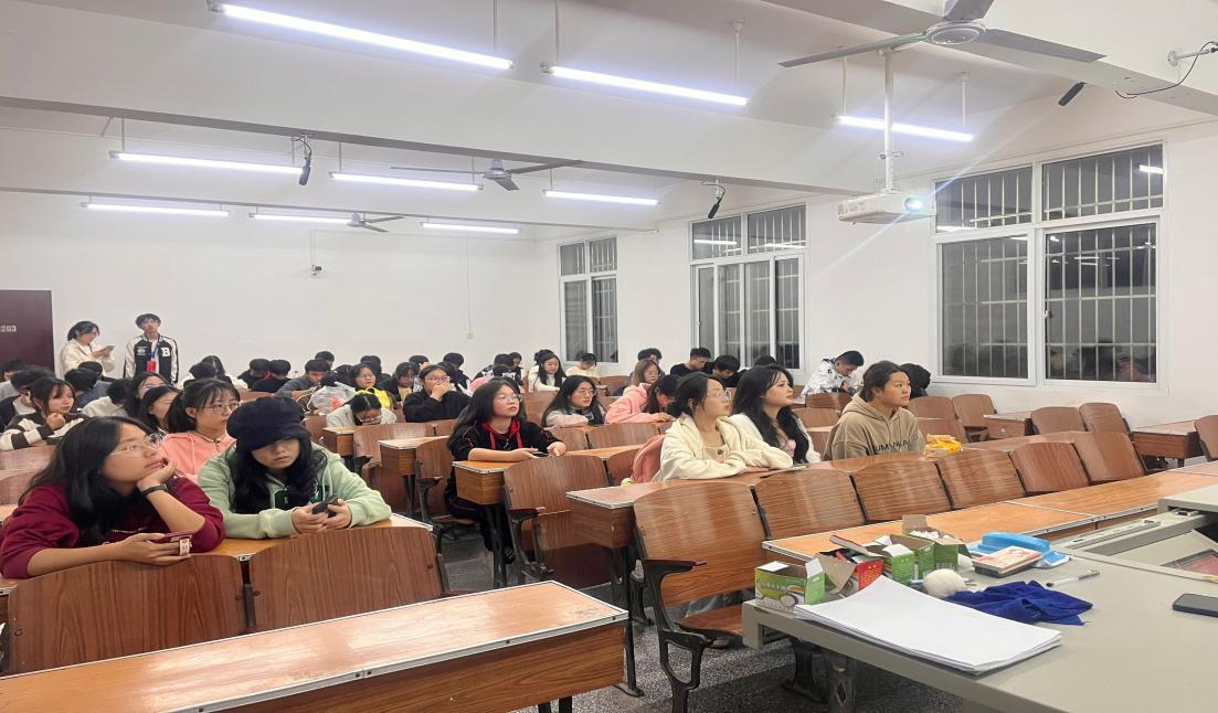 本网讯(见习记者 李宛凌 刘新姿/文) 11月5日晚,我院举办“学习先进事迹,绽放青春之花”主题晚点名活动,此次晚点名由各班班长主持,各班同学到场参加。