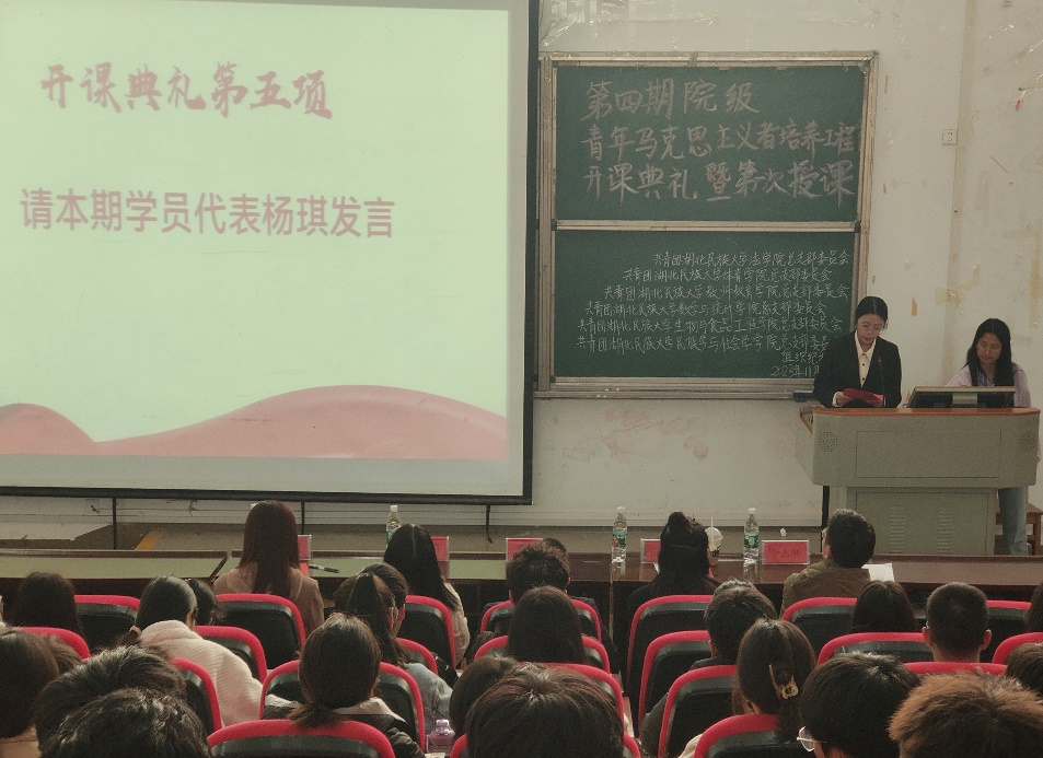 11月23日下午,学院联合民族学与社会学学院、法学院、教师教育学院、生物与食品工程学院、体育学院在修远楼5B404教室共同举办第四期“青年马克思主义培养工程”培训开课典礼。