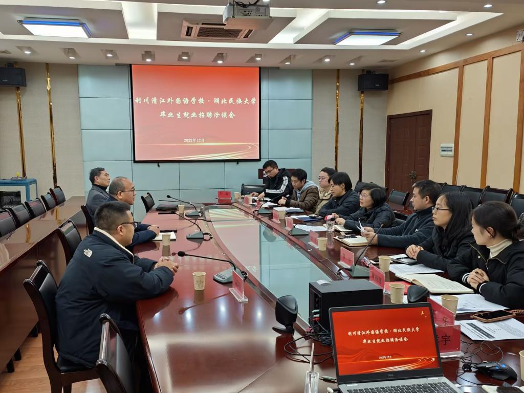 学院深入贯彻党中央、国务院关于高校毕业生就业工作决策部署,全力推动毕业生就业工作。12月中旬,四楼会议室召开利川清江外国语学校·bat365在线中国登录入口毕业生就业招聘洽谈会暨2023年秋季学期毕业生就业工作推进会。出席本次会议的有利川市清江外国语学校校长颜时新,副校长胡银先,教务处主任韦森林;我院副书记郑敏,智能科学与工程学院副书记汪涛,化学与环境工程副书记张妮艳及相关学院负责就业的老师。