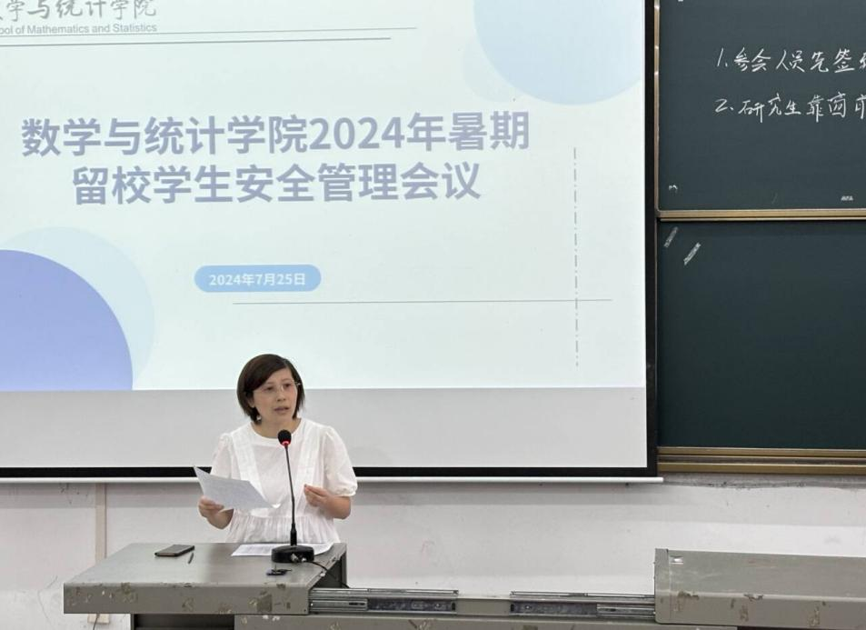 安全稳定工作一直是数统学院的重点工作,今年暑期留校人数多,安全责任大,本次会议的召开是学院加强暑期留校学生安全管理的重要抓手,旨在提升学生的安全防范意识,筑牢校园安全稳定屏障,努力为大家营造一个安全有序的学习生活环境。