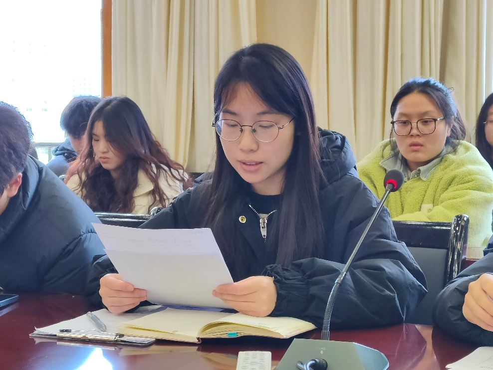 王千千对团队建设、常规工作、活动开展等方面工作予以梳理,同时阐述了学生会工作的不足之处、整改措施以及今后努力方向。她要求各部门完善活动信息反馈机制,充分调动学生积极性,想学生之所想,工作提质增效。