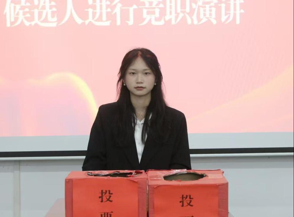 投票选举环节,由总监票人闵小玉、监票人谢铭、王千千负责投票流程的组织与监督。最终宣布张婷、王玉章与周钧泽成功当选第二十九届团委副书记,李宛凌与陶雅琪成功当选第五届公管会主任。