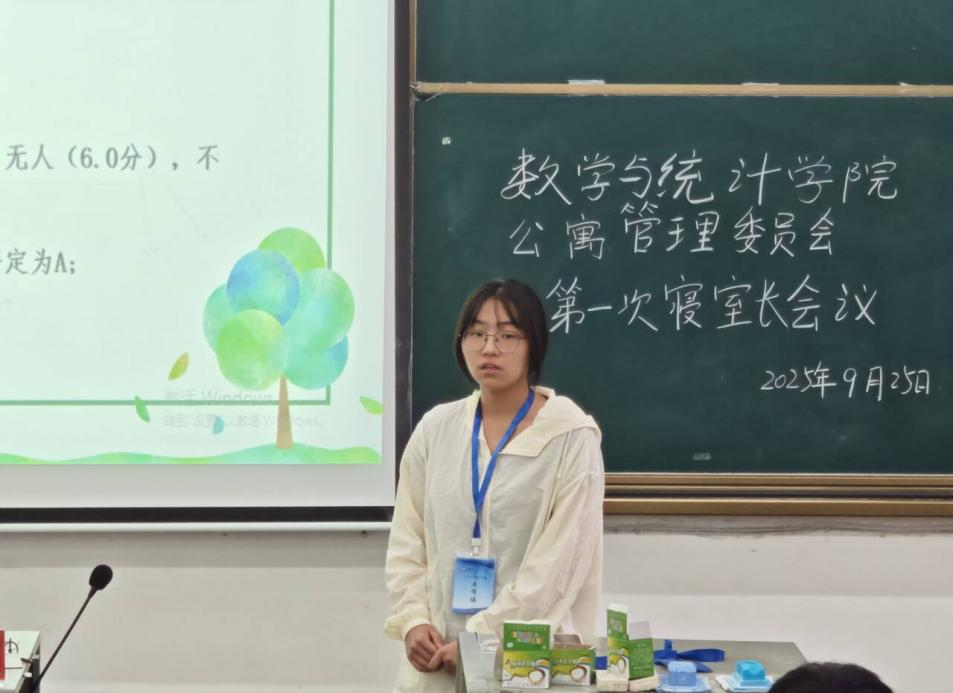 为规范2025级新生寝室管理,助力新生尽快适应大学生活,2025年9月25日数学与统计学院公寓管理委员会在学院3308召开新生寝室长会议。本次活动由公寓管理委员会行政部部长柳梦茜主持,2025级新生寝室长共同参与。