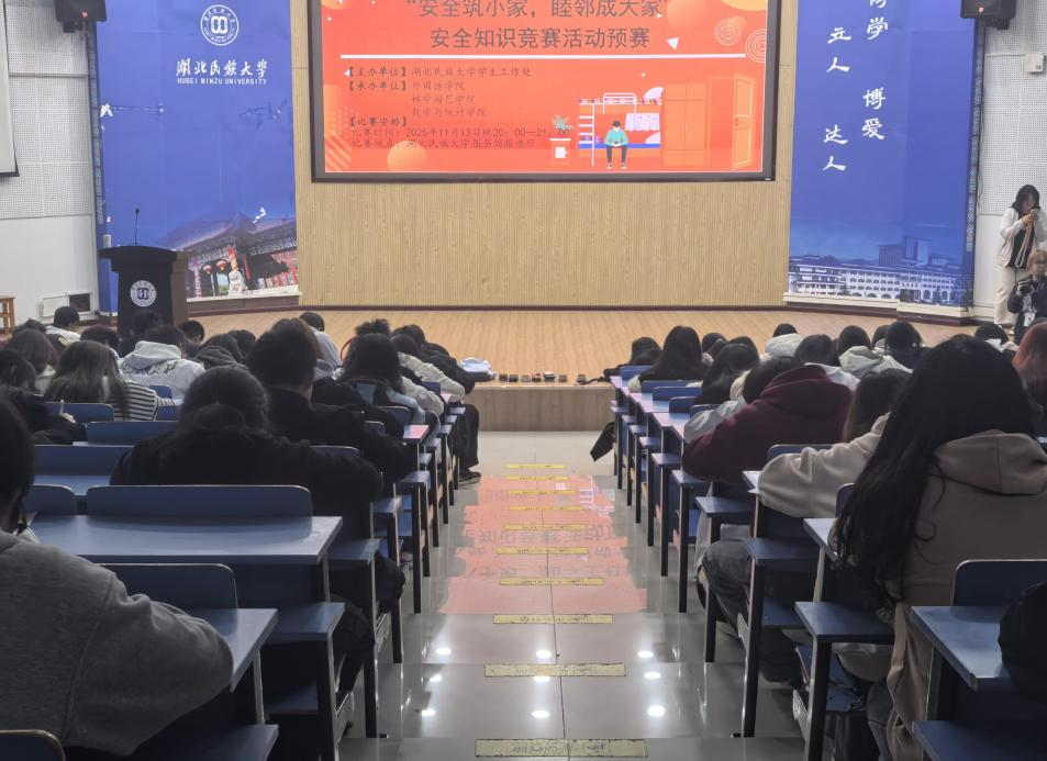 为增强学生安全意识,营造和谐互助的社区氛围,11月13日晚,bat365在线中国登录入口第一届学生社区文化节“安全筑小家,睦邻成大家”安全知识竞赛预赛在图书馆报告厅顺利举行。本次活动由外国语学院、林学园艺学院、数学与统计学院联合承办,吸引了全校各学院学生以寝室为单位组队参与,营造了浓厚的校园安全文化氛围。