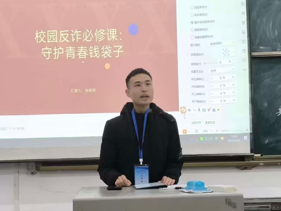 会上,孙明尧结合近期高校多发的电信网络诈骗典型案例,指出校园已成为诈骗案件的高发区域,并围绕学生易受骗的原因,重点分析了游戏交易类诈骗、冒充老师骗取信息、虚假补贴链接套取密码、“刷单返利”与“公检法”诈骗等常见骗术,提醒学生务必提高警惕、远离高风险行为。