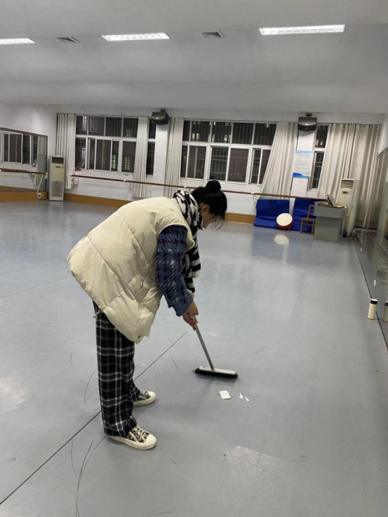 2021年临近尾声,为深化党史学习教育成果,在秋季期末考试周之际,音乐舞蹈学院学生党支部成立卫生执勤小分队,对学院各个教室进行卫生打扫,为全院考试工作做好做牢后勤保障,通过实际行动为群众办实事。