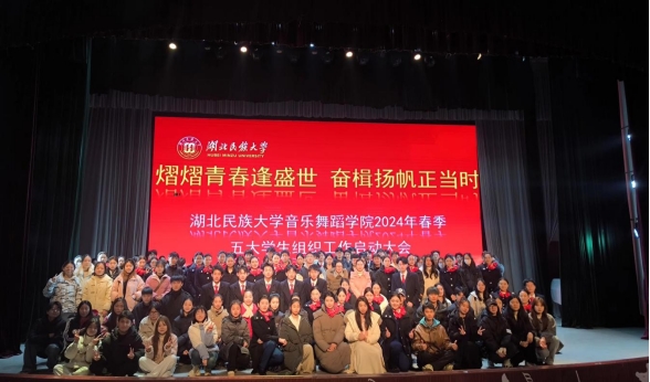 2024年3月4日,以“熠熠青春逢盛世•奋楫扬帆正当时”为主题的2024年春季学期学生组织工作启动大会,在音乐舞蹈学院演播厅顺利召开。音乐舞蹈学院党总支副书记邓丽,学生科杨倩老师、张岩老师,及音乐舞蹈学院学生组织全体成员参会。