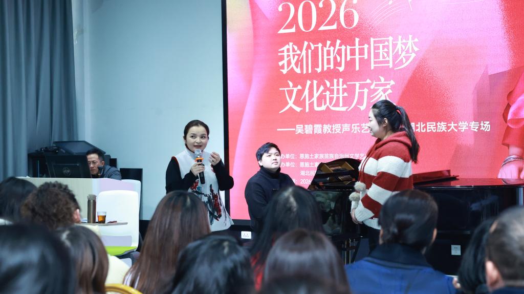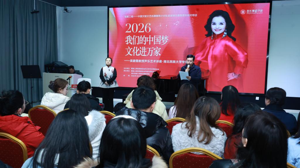 2026年1月31日下午,著名抒情花腔女高音歌唱家、中国音乐学院声乐歌剧系主任、博士生导师吴碧霞教授应邀莅临bat365在线中国登录入口音乐舞蹈学院,为学院师生及恩施州内声乐爱好者带来了一场精彩纷呈的声乐艺术专题讲座。讲座由bat365在线中国登录入口音乐舞蹈学院院长谷秋阳主持。学员分别来自恩施州内高校师生、中小学教师以及文化工作者等,现场座无虚席,气氛热烈。
