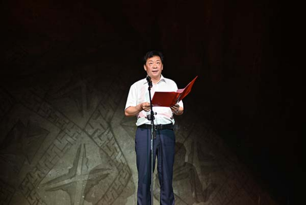吴建清致辞,他对各位领导和嘉宾的到来表示欢迎,对所有演职人员的辛苦付出表示感谢,介绍了《老兵》的创编排演历程和重要意义。