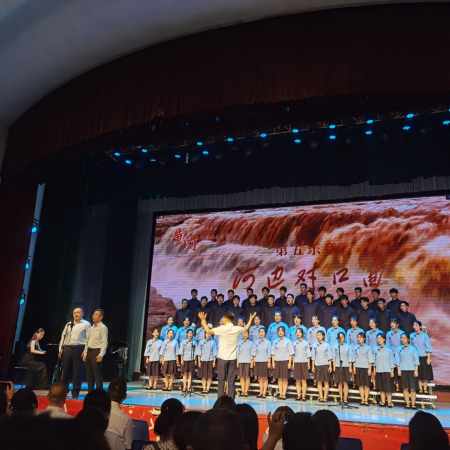 本场音乐会结合讲述、朗诵、合唱形式,全体教职工党员、学生党员和合唱团学生参与演绎。《黄河大合唱》音乐会在主讲人——音乐舞蹈学院党总支书记张蕊声情并茂的讲述中拉开序幕。第一乐章《黄河船夫曲》展现出了“黄河的船夫在暴风雨中搏战,经过千辛万苦终于到达彼岸”的情景;澎湃激昂的男声独唱《黄河颂》表达了中华儿女对黄河的无限热爱和热情讴歌;配乐诗朗诵《黄河之水天上来》、混声合唱《黄水谣》则表现出中国人民面对侵略者的坚强不屈和英勇无畏的伟大精神;《河边对口曲》讲述了广大流亡民众颠沛流离、背井离乡的悲惨遭遇,体现出了家国存亡的内忧外患;女声独唱《黄河怨》悲惨缠绵、低沉凄切、如泣如诉,唱出了一个被敌人压迫的绝望妇女内心深处痛苦的哀怨;混声合唱《保卫黄河》《怒吼吧,黄河》气势恢宏、磅礴大气,表现出了中国人民保家卫国、抗战必胜的决心和中华民族团结一致、所向披靡的伟大精神力量。最后,由桂花园社区党支部书记、主任王玉娇带领现场全体党员重温入党誓词,音乐会至此圆满落下帷幕。