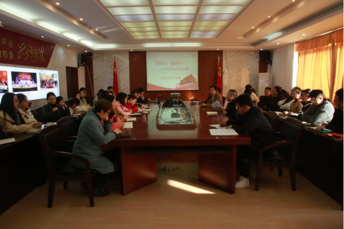 11月25日下午,音乐舞蹈学院组织全体教职工在学院会议室专题学习党的十九届六中全会精神。院党总支全体成员、各支部书记、学院教师及学生党员代表参加此次会议。学院党总支委员谷秋阳主持会议。