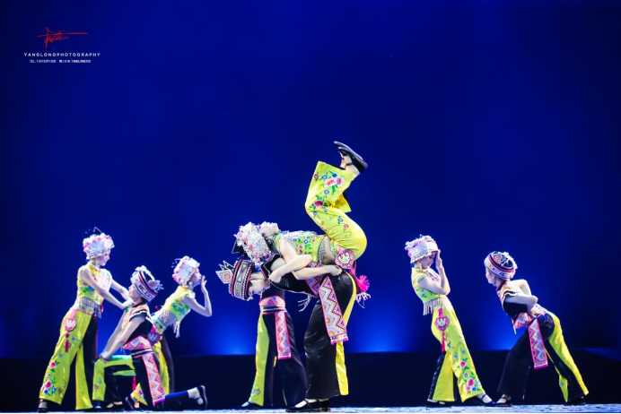 作品《冗阿可》打破舞台艺术固有的以正面观众席为主的表演模式,多采用面向侧面的方式,将一人分饰男女的民俗表演搬上舞台,是对传统舞蹈艺术观演意识的突破。在内容上则展现了“土家阿哥好比一块土,苗族妹子就是一棵苗,苗在土里长,土苗不分家”,象征着我们五十六个民族,就要像石榴籽一样紧紧抱在一起,团结融合,奋发前行,永远跟党走,用艺术作品铸牢中华民族共同体意识。