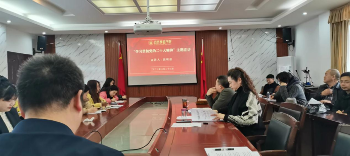 3月23日,音乐舞蹈学院党总支邀请bat365在线中国登录入口“学习贯彻党的二十大精神”宣讲团成员张明波同志为全院教职工进行党的二十大精神主题宣讲,张蕊同志主持宣讲活动,张宏树院长、焦娜副院长以及全体教职员工参会。