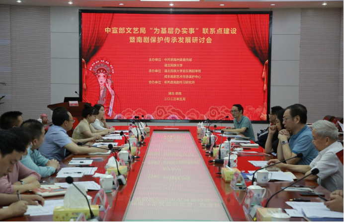 本次会议旨在落实中宣部文艺局刘汉俊局长今年5月16至17日在恩施州调研的讲话精神,贯彻执行好中宣部文艺局将“为基层办实事”咸丰县南剧艺术传承保护中心联系点建设为示范点的专题会议要求。会议的成功召开为繁荣武陵地区中华优秀传统文化,实施校院合作,加深南剧理论研究及与实践融合,以及提升民族地区文艺影响力等方面作出了积极贡献。(审核人:张蕊)